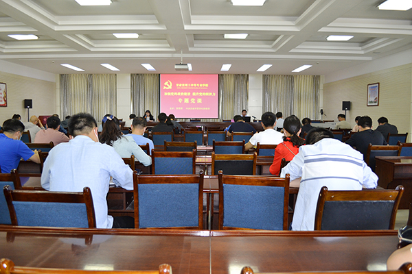 6月17日下午,我校邀请武威市委党校裴国辉副教授作了题为“加强党的政治建设,提升党的组织力”专题党课宣讲,党课宣讲会由学校纪委书记、副校长张建华同志主持,全校党员、预备党员、入党积极分子等60多人参加。