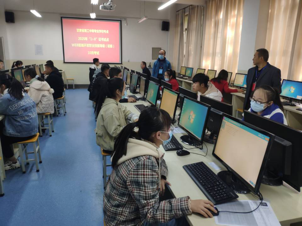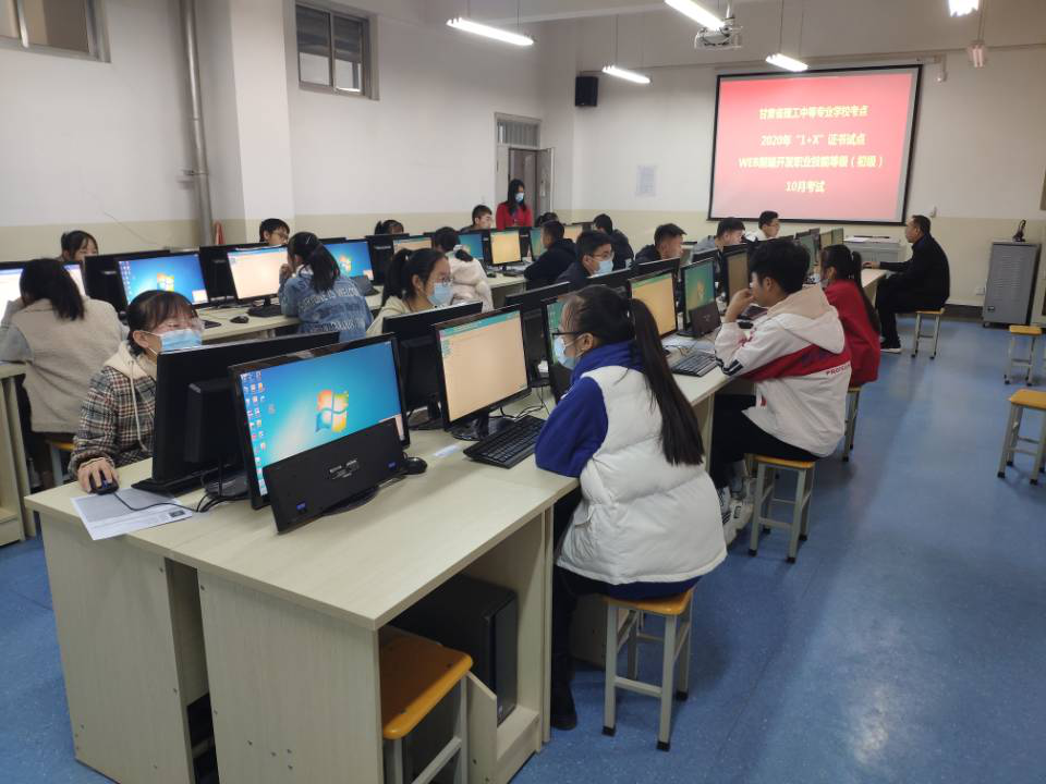 为贯彻《国家职业教育改革实施方案》精神,积极开展1+X证书制度试点工作,10月17日,2020年Web前端1+X职业技能等级认证(初级)考试在我校顺利举行,此次考试是我校首次承办1+X证书考核工作,学校领导高度重视,要求相关负责部门严格按照认证流程精心组织本次考试,确保本次考试的顺利进行。我校计算机专业20名学生参加本次认证考试。